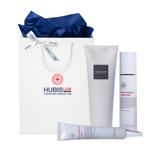 Rinkinį sudaro: Regener drėkiklis, Derma Regener K kremas ir jauninanti kreminė kaukė.